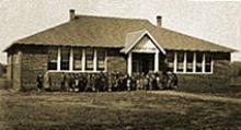 Side-by-side: The school in 1960 and a class of students in the 30s
