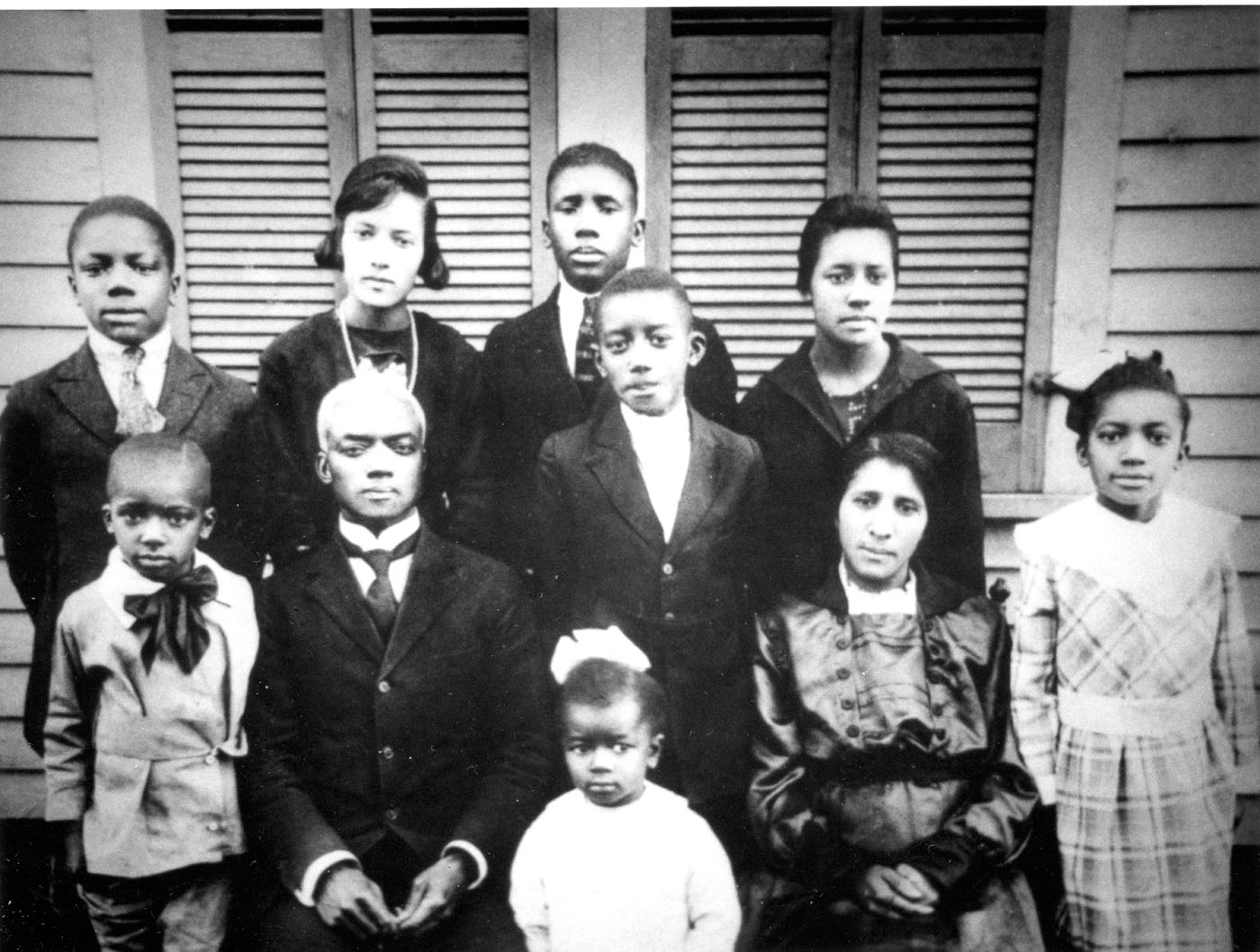 The Reverend C. H. Shute family, c. 1921. Left to right, front row: Matthew, the Reverend Charles Henry, Mary, Marlow, Annie Foster Shute, Esther. Back row: Raymond, Vivian, Charles Jr., Ionia.