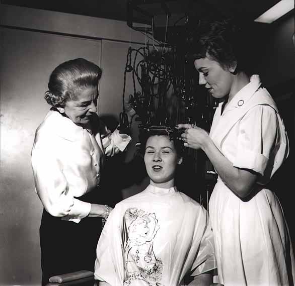 - Photo: 11/3/59 (Jim Dumbell) - Article: 11/8/59. Like a scene from The Bride of Frankenstein, this bizarre contraption, a croquinole curler, was used for giving permanents. Salon owners such as Jeanette Harney in Myers Park had many customers who preferred the machine waves. The cost was $15.00.