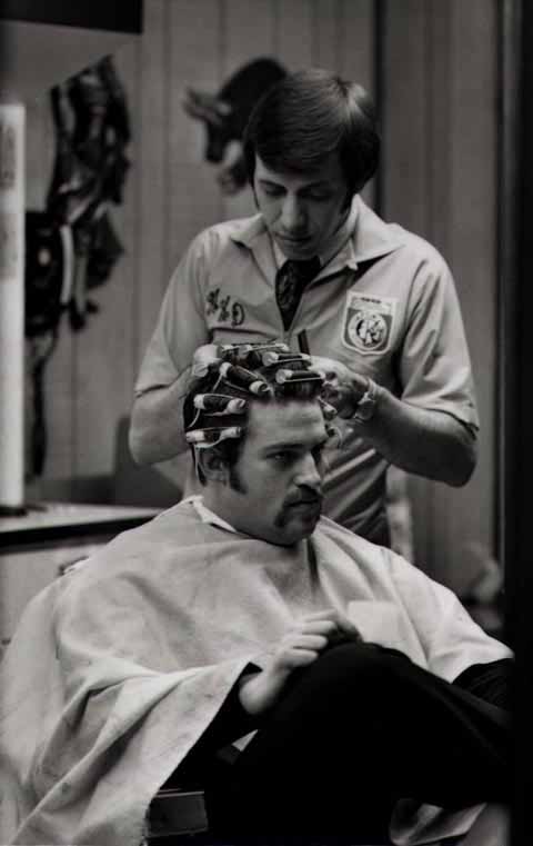 - Photo (Steve Perille) - 1/3/74 - Article: 1/8/74. Four shops in Charlotte regularly offered permanents for men, including the Metrolina Hair Design. The professions of hairdresser and barber were beginning to merge.