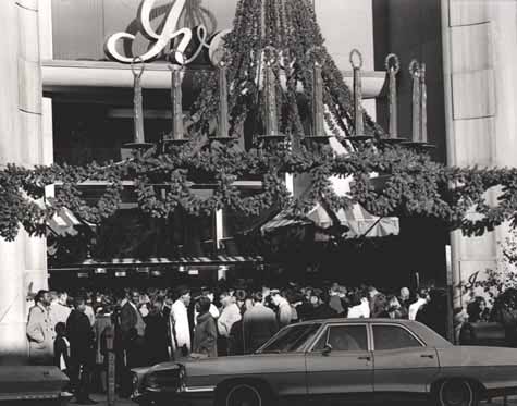 - Holiday shoppers gather in front of Ivey’s. Despite competition from suburban retailing, downtown was still a retail center in the sixties. Photo: Christmas 1968 - Article: unknown