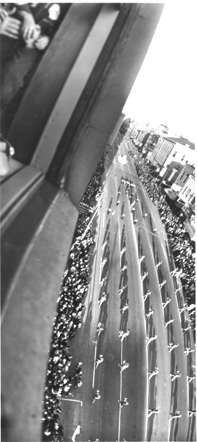 The Carrousel Parade kicked off the holiday season in Charlotte in November since 1947. This bird's eye view of the parade was taken on November 22, 1956.