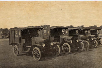 These five motorized ambulances bear the name U.S. and have the Red Cross insignia. Camp Greene soldiers also used Red Cross wagons pulled by animals.