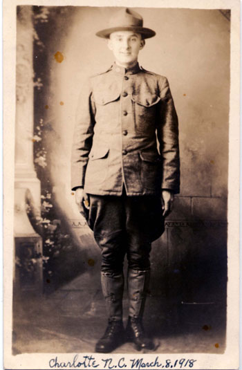 This doughboy had his photo taken and printed on a postcard. "Charlotte, N. C. March 8, 1918"