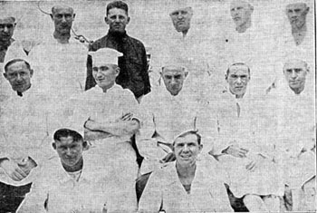 These men cooked their way into the hearts of the soldiers stationed at Camp Greene. They suffered the heat of the kitchen and had little or no cooking experience before joining the army. Some were stenographers, traveling salesmen, clerks, an ex-sailor, a bartender, mechanics, lumbermen and a man 'who made Laske's Clippings famous all over New England.' Top row, left to right: Wright, VanTassell, Sgt. Laske, Lennix, Scherbarth and Pinkham. Second Row, left to right: Tannreuther, Barnes, Butler, Western and Bingham. Bottom Row: Westgate and Bauers.