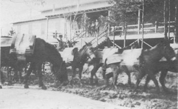 Empty pack train in front of Receiving Ward, Base Hospital, Camp Greene, Charlotte, N. C. 2/1918