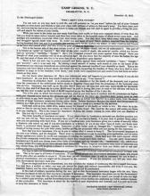 This letter went to "Discharged Soldiers" at Camp Greene and is dated 12/19/1918. It came from the Insurance Section, Camp Personnel Office, explaining the benefits of having Government insurance. From its simplistic nature, it implies that most soldiers were not familiar with private insurance before they entered the military.