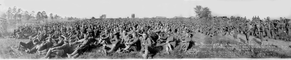 Ten Thousand of Our-Boys. Camp Greene, NC. Oct. 11, 1917. Watching Charlotte Observers Scoreboard. World Series Ball Game, 41st Div. U. S. A."