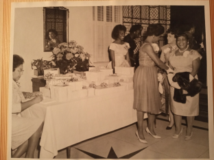 The Barringer hotel ballroom had high ceilings and gleaming chandeliers. The Hargrave’s reception included two hundred friends and family, who traveled far and wide to attend. The anniversary couple received gifts in keeping with a golden anniversary theme and were displayed in the living room of their house, which was located at 414 Martin Street, across from JCSU. Their grand-daughter, Vicille “Dee Dee” Wallace Murphy, still has several anniversary gifts they received, which she will give to her grandchildren: a set of bronze book ends, a gold metal vanity stool and a Lenox china napkin holder leafed in 14 carat gold, that a guest brought back from Greece.
