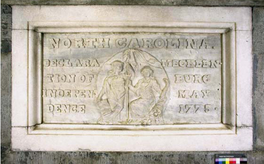North Carolina. Declaration of Independence May 1775. The state of North Carolina presented this native block of white marble to the Washington Monument in the District of Columbia at noon on February 22, 1853.