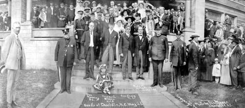 U. S. President Woodrow Wilson (center, in top hat) appears in this Moon photograph with many Charlotteans, Gov. Manning of South Carolina, Gov. Craig of North Carolina and Charlotte Mayor Kirkpatrick for Meck Dec celebrations in 1916.