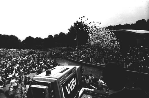 President Gerald Ford was received by thousands of people crowded into Freedom Park for the Meck Dec bicentennial in 1975. The holiday was celebrated with the release of hundreds of balloons as a television station, WBTV, filmed the event.