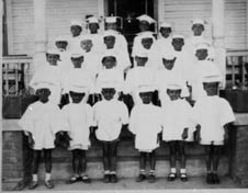 The Kindergarten class of 1945 at Bethlehem Center. Located on 301 North Caldwell Street. Floyd Wallace Jr., Brenda Johnson, Laura Pitts, Carolyn Tillman, the rest are unidentified. Physical Description: 5 x 7 Publisher: Unknown