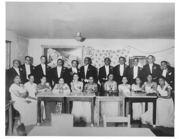 Members of the Black Cat Social Club and their wives at annual Christmas Dance. Physical Description: 5x7 Enlarged version is in Exhibit. Publisher: Unknown