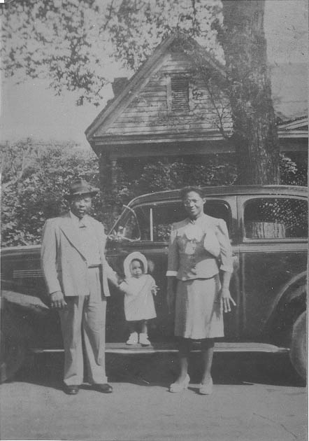 J. F. Cochran, Thelma Cochran and Sallie Wright Cochran. This picture was taken in front of their home at 315 North Caldwell Street in the First Ward neighborhood. Physical Description: Publisher: Unknown