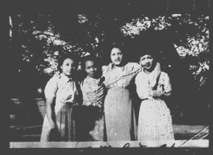 Picture taken on Morehead Street.From left to right: Tina Evans, Catherine McGrant, Alberta White, Edna McGrant. Physical Description: Publisher: Unknown