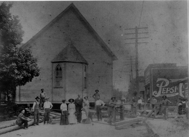The Little Rock AME Zion Church was established in the 1870s. The building seen here is the second 1887 Little Rock AME Zion Church was located in Third Ward on S. Graham St. between Second and Third Streets. In 1906, the church was moved to the 7th and Myers Street. Because the move took place over several days, it was necessary to hold a funeral inside the sanctuary during the move. This building was replaced by a more substaintial one in 1911.