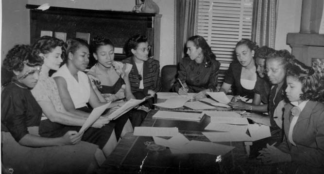 The Planning Committee of the Phyllis Wheatley YWCA. Left to right: unknown, Eloise Usher, Elizabeth Randolph, Eva Long, Allegra Westbrooks, Goldwyn Foster, Floretta Douglas Gunn, Romenia Ford, Willie Mae Porter, unknown. Physical Description: Publisher: Unknown