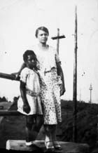 From left to right: Mable Gary (1900-1978) and Pricilla Wilson at the Old Southern Railroad. It was located on 16th Street and North Tryon. Physical Description: Publisher: Unknown