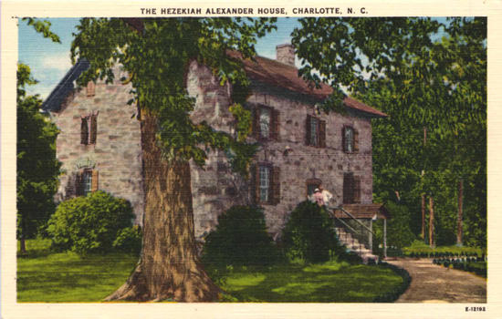 Hezekiah Alexander House was built in 1774. This rock house is located on Shamrock Drive. It is the oldest house in Mecklenburg County. Physical Description: 3x5 Publisher: Asheville Postcard and Pennant Company