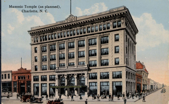 A proposed picture of the Masonic Temple in Charlotte. The actual building was of the Egyptian Revival design.