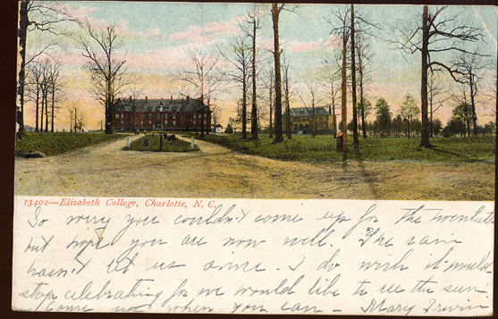 Elizabeth College operated in Charlotte from 1896 to 1915. It was located at the intersection of Hawthorne Lane and Elizabeth Avenue. Today the buildings are part of Presbyterian Hospital. Physical Description: 3x5 Publisher: Souvenier Postcard Company