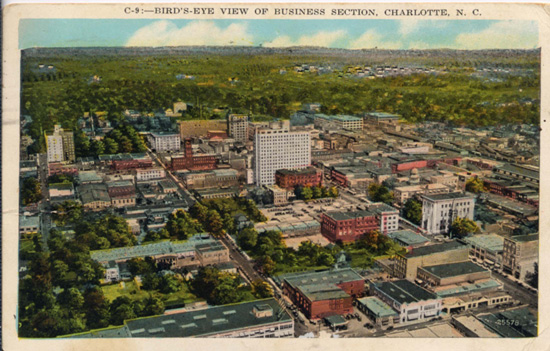 `Bird's-Eye View of Business District.` Physical Description: 3x5 Publisher: Asheville Postcard and Pennant Company