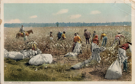 Workers picking cotton in Mecklenburg County. Physical Description: 3x5 color Publisher: Unknown