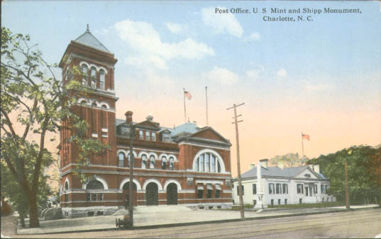 Prior to the completion of this building in 1881, the United States Post Office rented various buildings in Charlotte. This post office operated on the corner of Trade and Mint Streets from 1881 to 1915. Physical Description: 3x5 Publisher: CT American Art