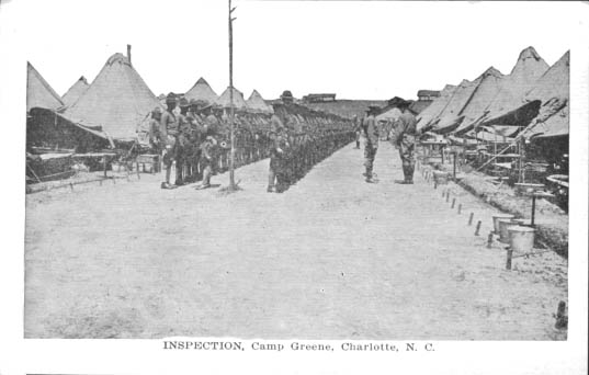 Inspection at Camp Greene, the World War I military training base in Charlotte, North Carolina. Physical Description: 3x5 Publisher: A. M. Simon