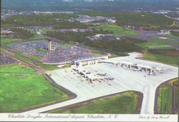 The Charlotte Douglas International Airport is located in west Charlotte and provides passenger and commercial air service throughout the world. Physical Description: 3x5 Publisher: Aerial Photography Services, Inc.