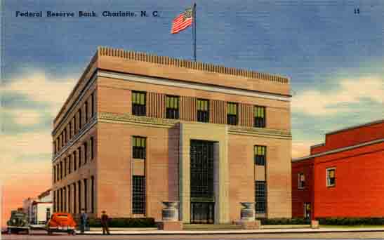 The Federal Reserve Bank on South Tryon Street opened in 1927. Physical Description: 3x5 Publisher: Dixie News Company