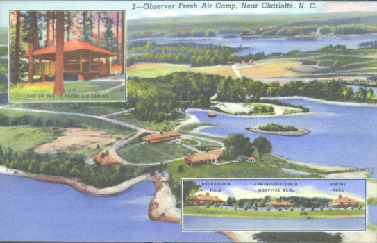 The Observer Fresh Air Camp offered camping opportunities to underprivileged children for two weeks each summer. It was sponsored by The Charlotte Observer. Physical Description: 3x5 Publisher: Genuine Curteich