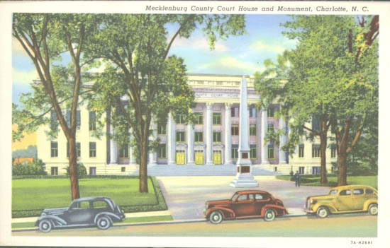 The fifth Mecklenburg County Courthouse is located at 700 East Trade Street. Built at a cost of one million dollars, it first opened in 1928. Physical Description: 3x5 Publisher: Dixie News Company