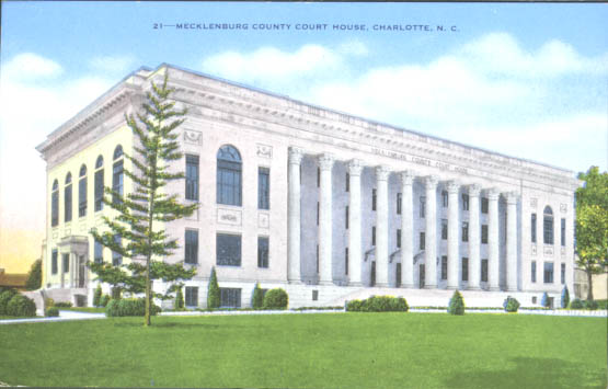 The fifth Mecklenburg County Courthouse is located at 700 East Trade Street. Built at a cost of one million dollars, it first opened in 1928.The Fifth Mecklenburg County Courthouse is located on West Trade Street. Physical Description: 3x5 Publisher: Dixie News Company