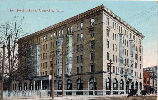 The Selwyn Hotel was located on West Trade Street. It opened in 1907. Physical Description: 3x5 Publisher: International Post Card Company