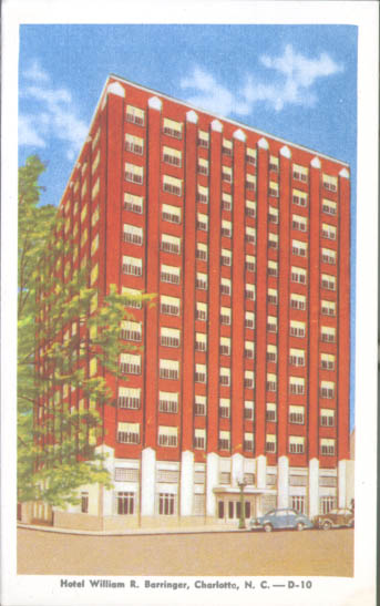 The Barringer Hotel opened its doors on December 15, 1940 at 4425 North Tryon Street. Built by Laurence S. and his sister Flora Barringer, the hotel was named for their father, William Rufus Barringer. The latter owned a number of elegant hotels in the south. Today it is a Senior Citizens Residence Home and Center.