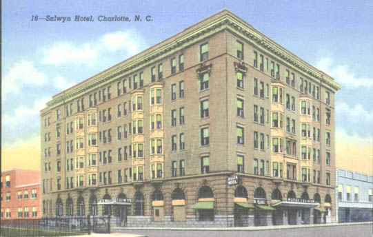 The Selwyn Hotel was located on West Trade Street. It opened in 1907. Physical Description: 3x5 Publisher: Genuine Curteich