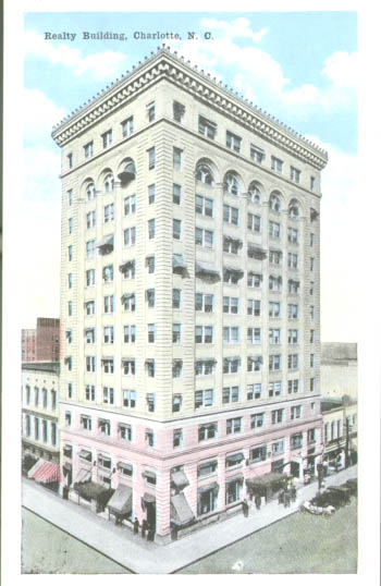 The Realty Building was located at the corner of Trade and Tryon and was built in 1907. It was renamed the Independence Building in 1920 and was torn down in 1981. Physical Description: 3x5 Publisher: S H Kress