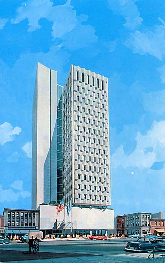 The Wachovia Bank and Trust is located on 129 West Trade Street. This fifteen-story tower was the first to use prismatic cast stone panels. Physical Description: 3x5 color Publisher: Unknown