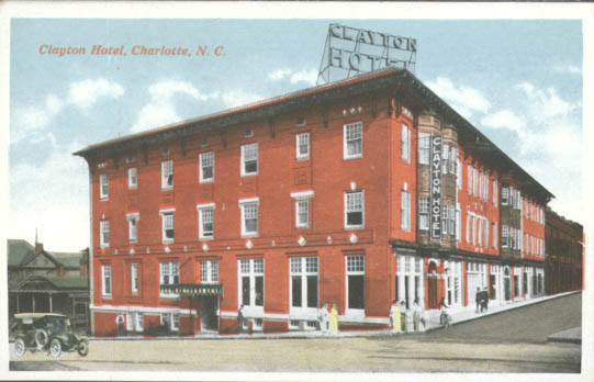 The Clayton Hotel was located on the northeast corner of Church and Fifth Streets. Built in 1913, the hotel offered 100 rooms and 50 baths. It was demolished in the mid-1970s to make room for a parking lot. Merton C. Propst was the owner. Physical Description: 3x5 Publisher: Unknown