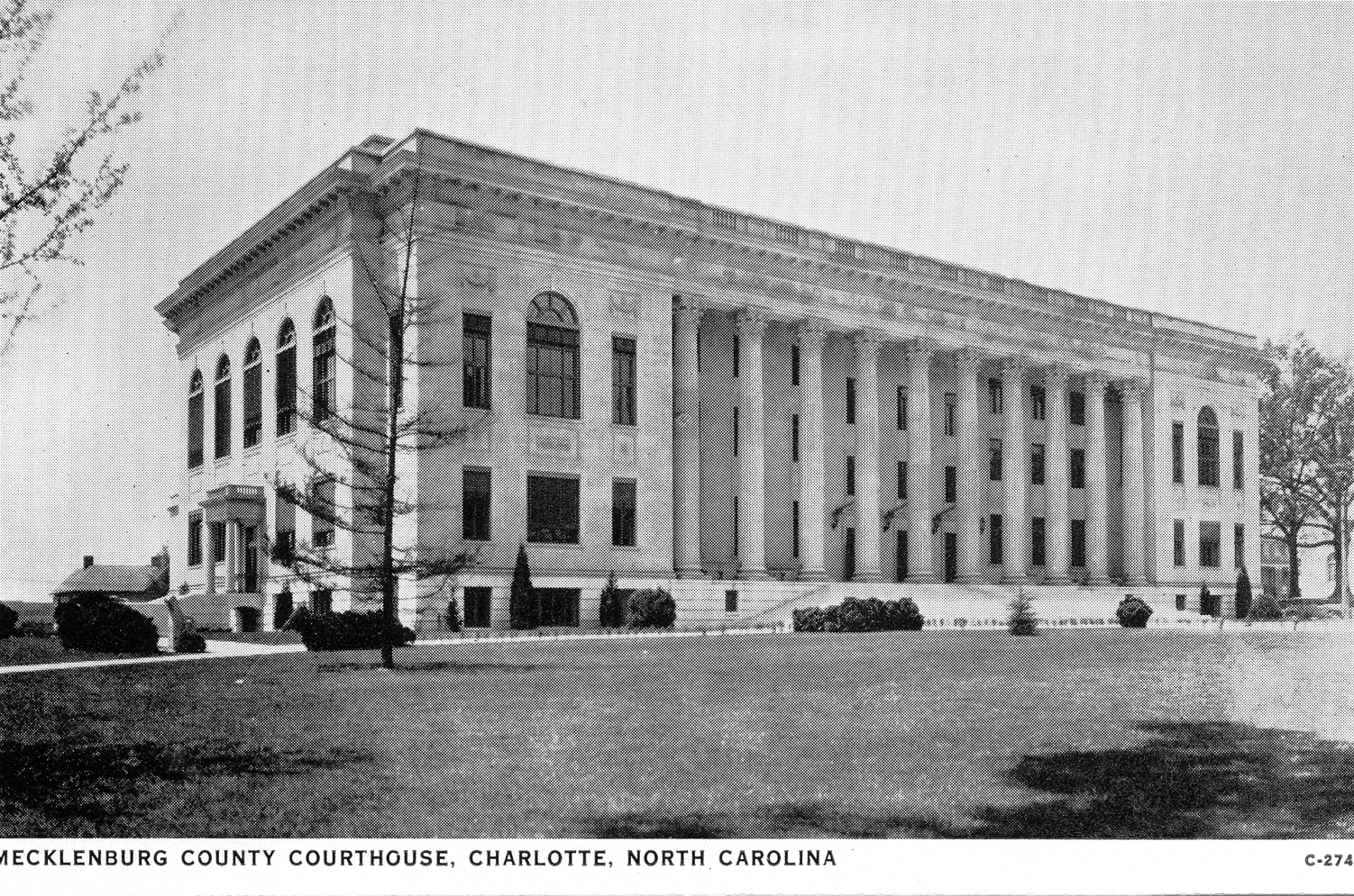 The The fifth Mecklenburg County Court House is located at 700 East Trade Street. Built at a cost of one million dollars, it first opened in 1928.