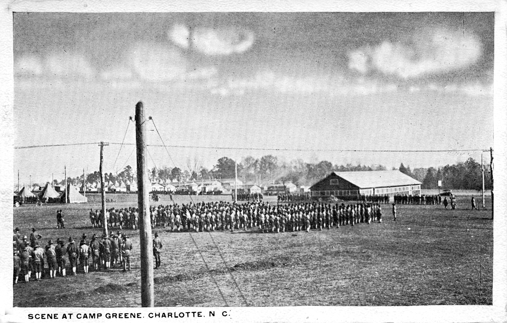 Camp Greene was a military cantonment camp for Army soldiers training for field combat, aviation, calvary, and transport. Located just outside the city limits in what is now the Enderly Park Neighborhood. The camp closed and was torn down after the war in the summer of 1919.