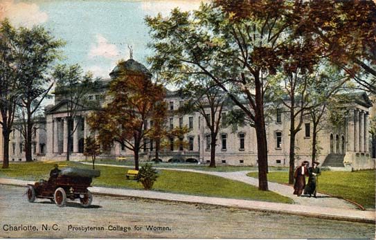 Presbyterian College for Women was located on College Street. It changed its names to Queens College when the school moved to Selwyn Avenue. Physical Description: 3x5 Publisher: Hugh C. Leighton Company
