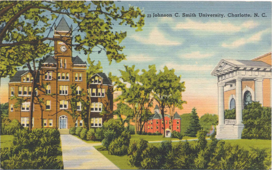 First known as Biddle University, Johnson C. Smith University was founded in 1870 on Beatties Ford Road. Colonel W.R. Myers donated the land. The school was named for its financial benefactor, Mary Biddle. On March 1, 1923, the school changed its name to Johnson C. Smith University in honor of another donor. Physical Description: 3x5 Publisher: Dixie News Company