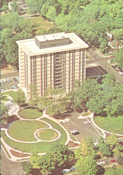 Located at 201 West Tenth Street, Edwin Towers in a 175-unit apartment house for the elderly. Physical Description: 3x5 Publisher: Aerial Photography Services, Inc.