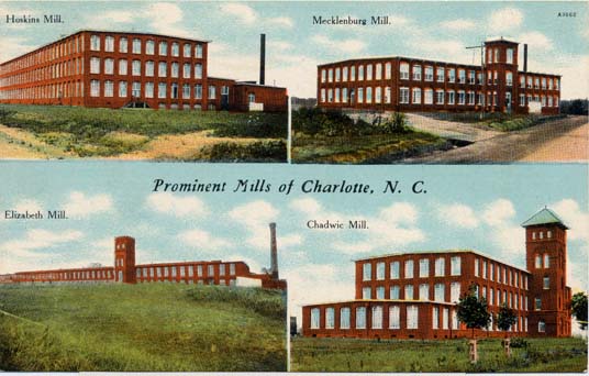Hoskins Mill (1904) was located at 201 South Hoskins Road. Mecklenburg Cotton Mill (1904) was located at 3401 North Davidson Street in what is now know as the NODA neighborhood. Elizabeth Mill (1902) was on Dowd Road, and the Chadwick Mill (1901) was west of Biddleville. Physical Description: 3x5 Publisher: S H Kress