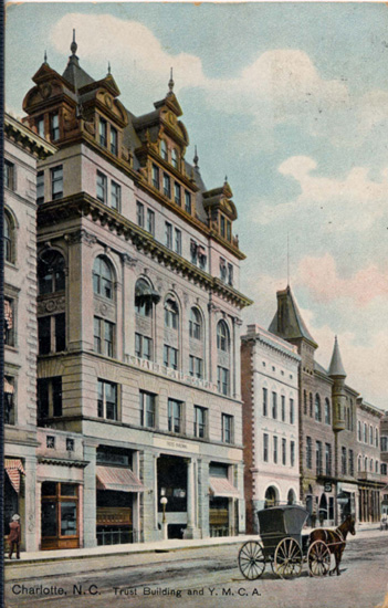 The Trust Building and the YWCA were located on South Tryon Street. Physical Description: 3x5 Publisher: Hugh C. Leighton