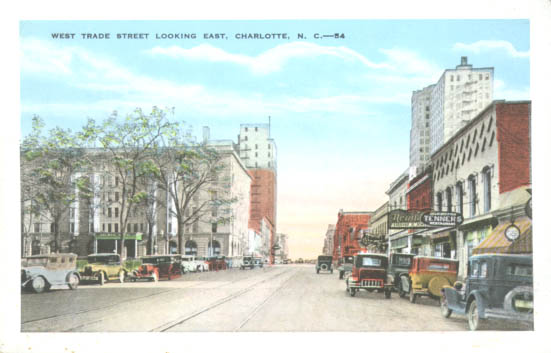 Looking east on West Trade Street. Physical Description: 3x5 Publisher: E. C. Kropp Company
