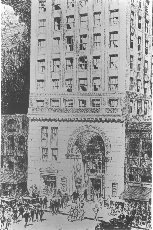 Architectural Drawing of the First National Bank Building.